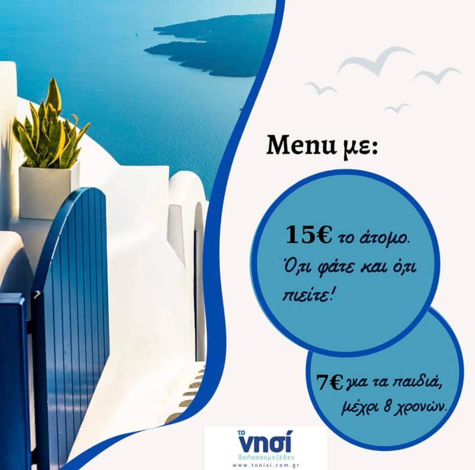Στα εστιατόρια μας θα βρείτε μεγάλη ποικιλία από πιάτα θαλασσινών, μεζέδες σε συνοδεία από ούζο, κρασί, τσίπουρο ή ό, τι άλλο επιθυμείτε. Σας περιμένουμε στο Νησί!