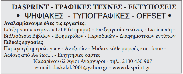 "DAS PRINT" ΓΡΑΦΙΚΕΣ ΤΕΧΝΕΣ, ΕΚΤΥΠΩΣΕΙΣ, ΨΗΦΙΑΚΕΣ, OFFSET.