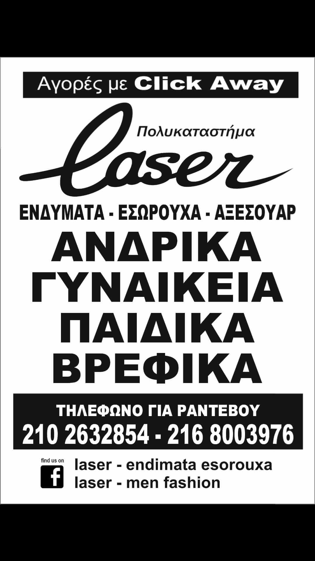 LASER. Κατάστημα Ανδρικών - Γυναικείων Ρούχων & Εσωρούχων, Αξεσουάρ.Ωράριο Λειτουργίας